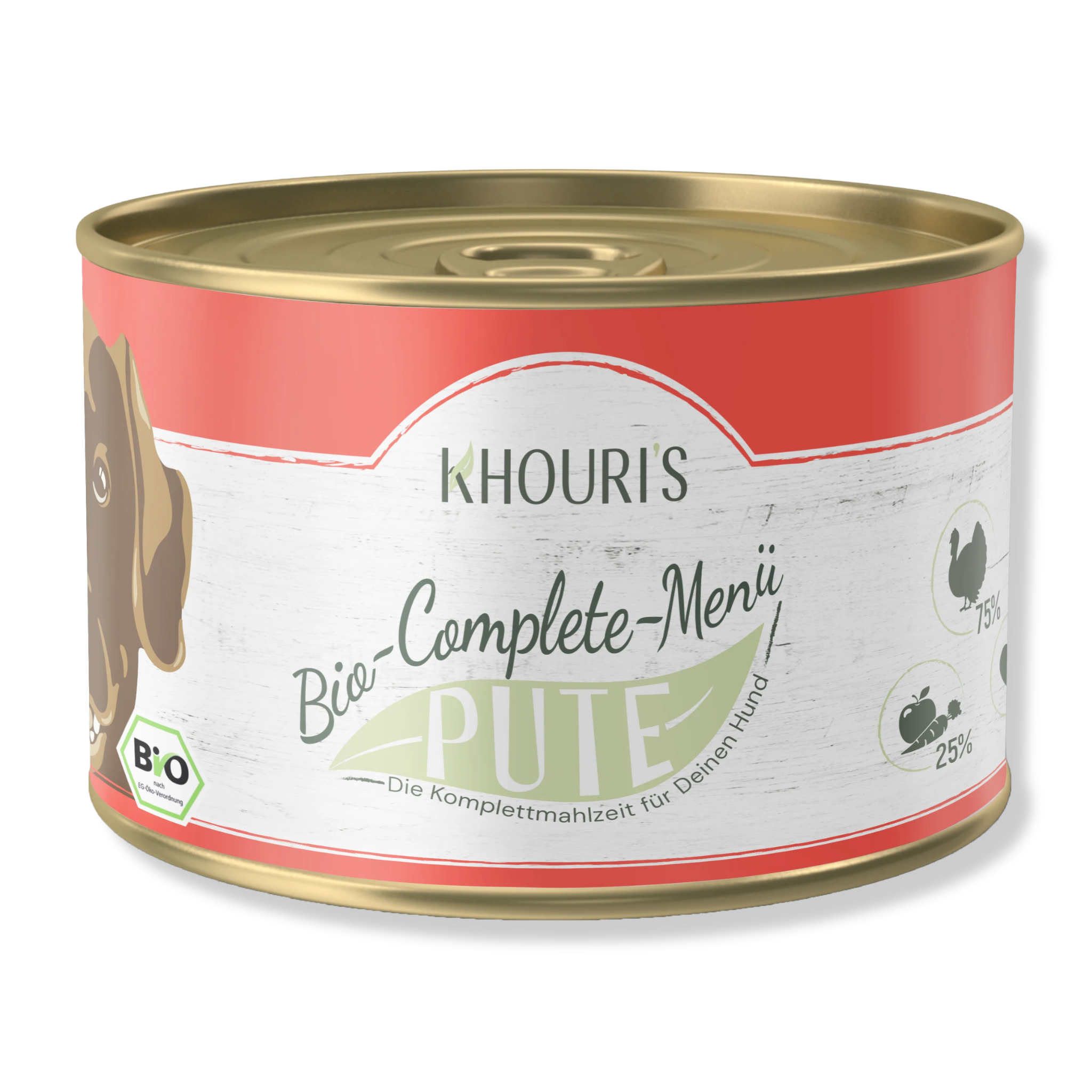 Unser Bio Complete-Menü Pute ist ein vollwertiges Alleinfuttermittel für Hunde in echter Bio-Lebensmittelqualität.