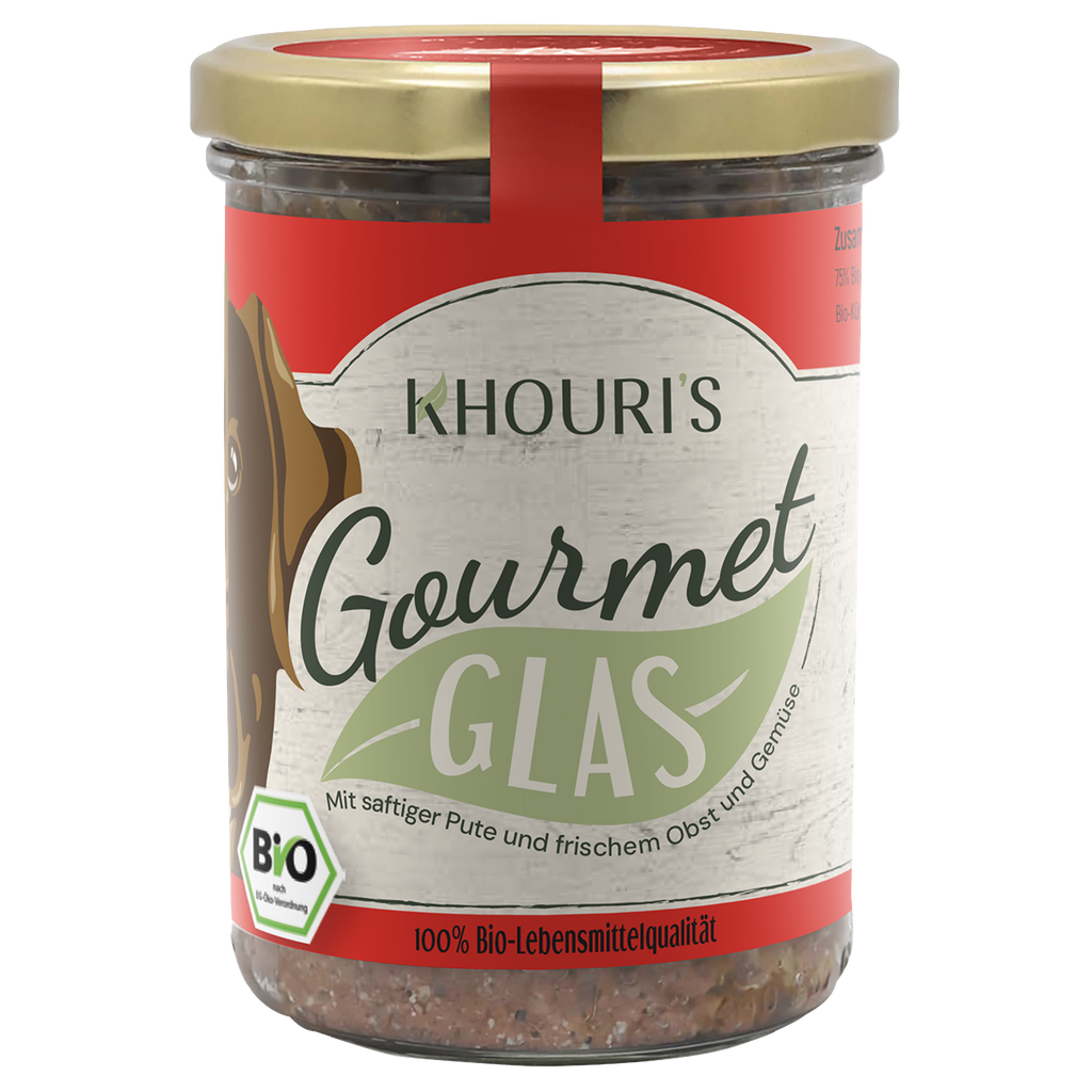 Wir setzen hohe Maßstäbe, wenn es um die Qualität unserer Zutaten geht. Deshalb verzichten wir vollständig auf künstliche Zusatzstoffe, Zucker, Farbstoffe und Konservierungsmittel. Khouri‘s Gourmet-Glas ist zusätzlich frei von Getreide und Gluten, also bestens geeignet für Hunde mit sensiblen Mägen oder Allergien!