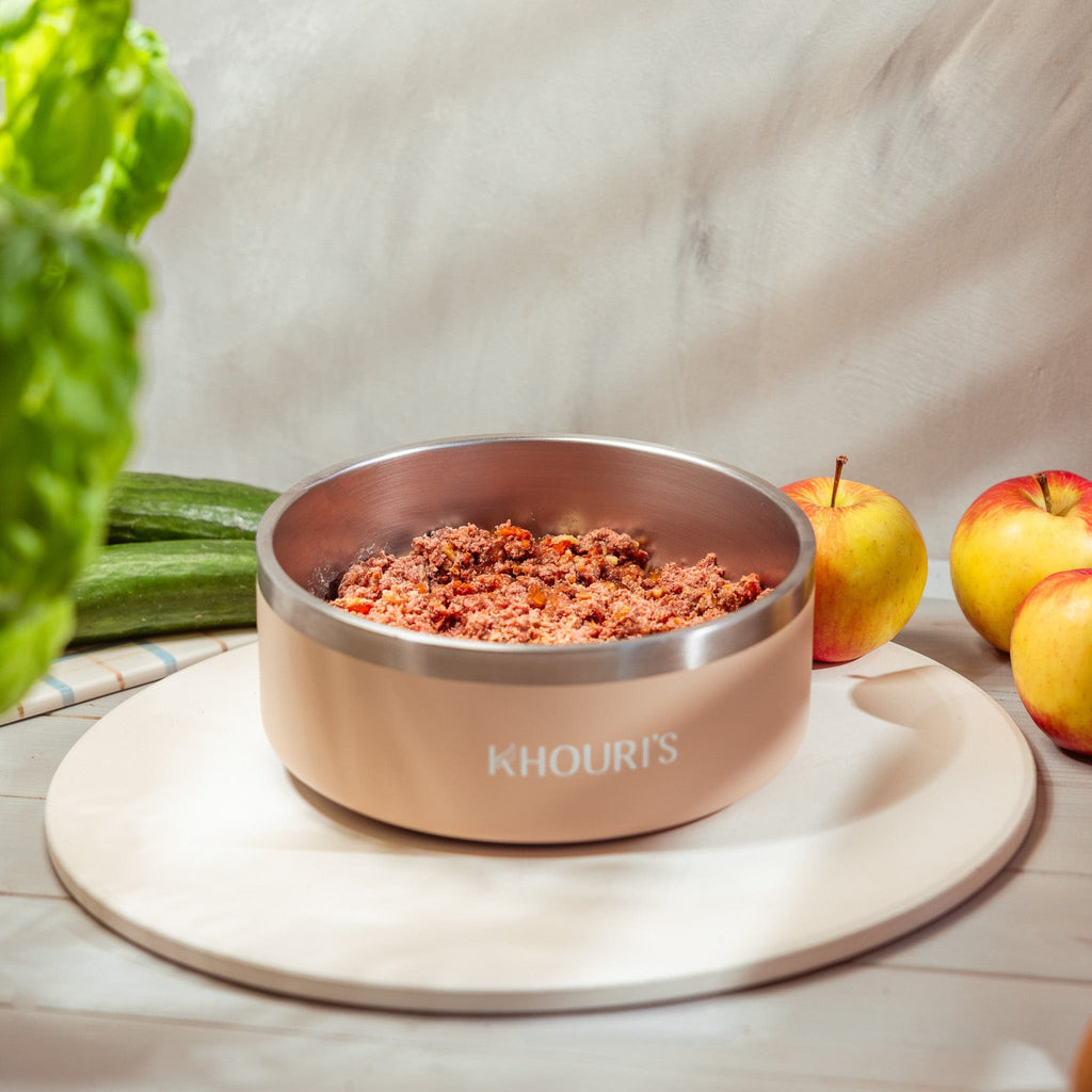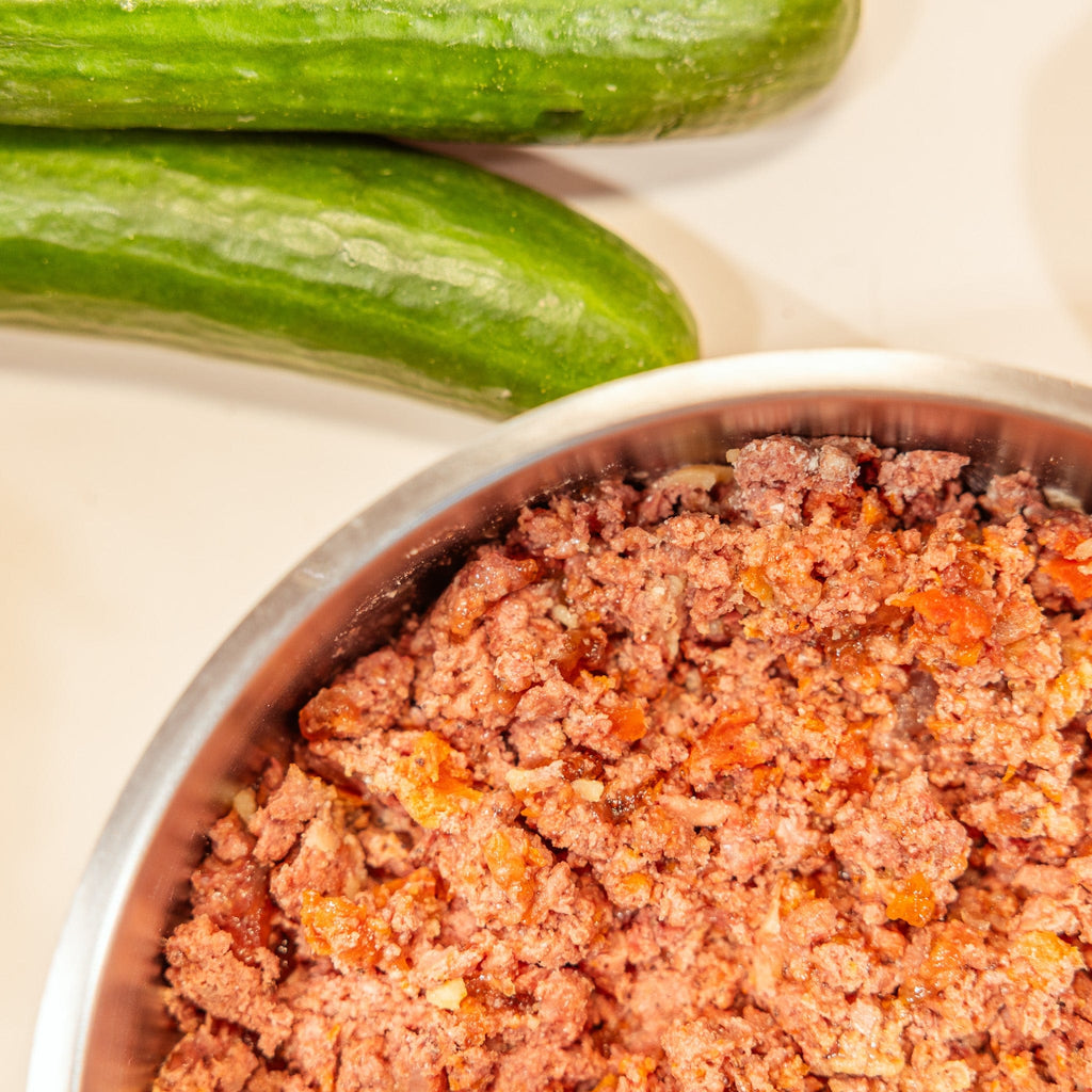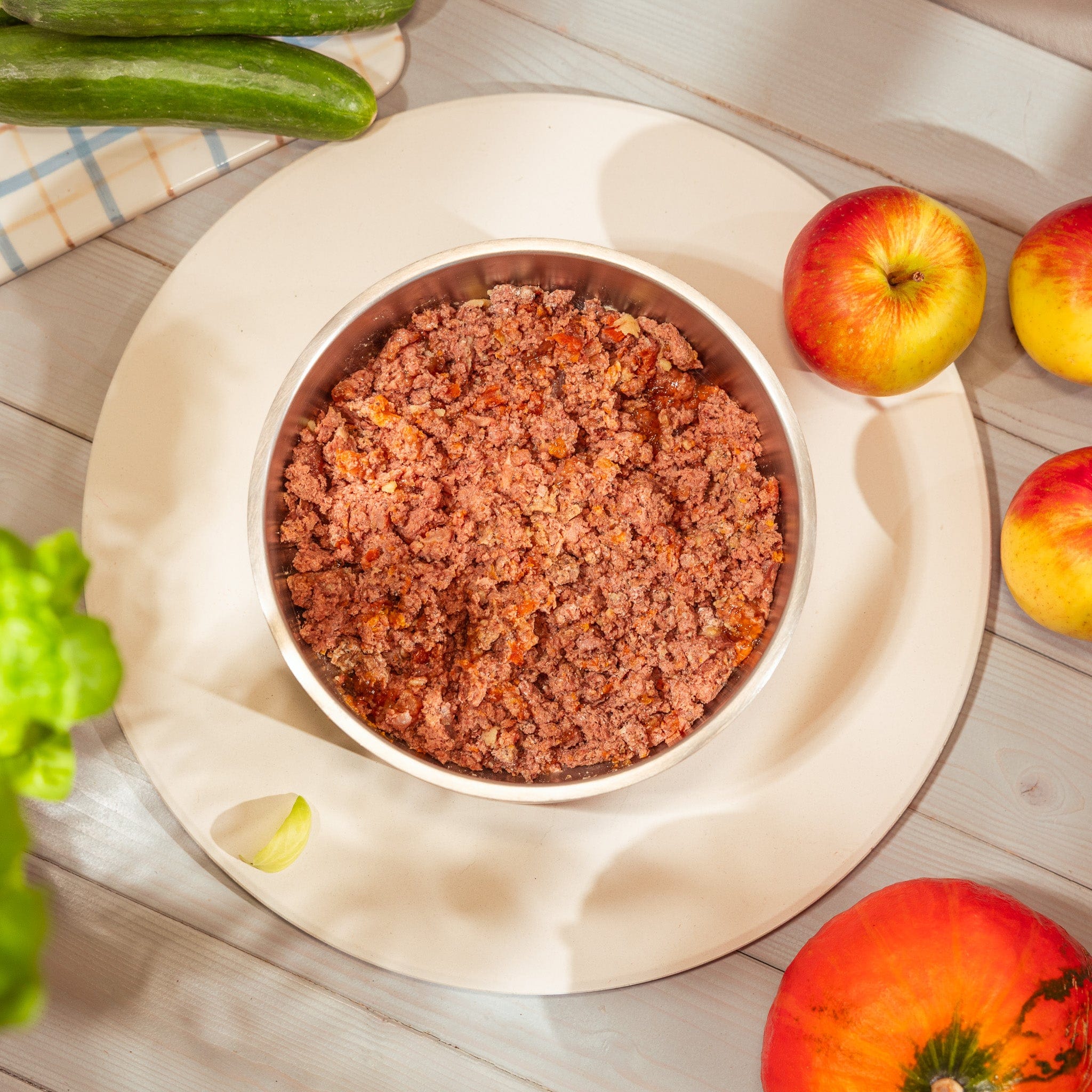 Zartes Bio-Lammmuskelfleisch, nährstoffreiche Lammleber und feines Bio-Gemüse ergeben ein vollwertiges Menü mit intensivem Geschmack und natürlicher Kraft.
