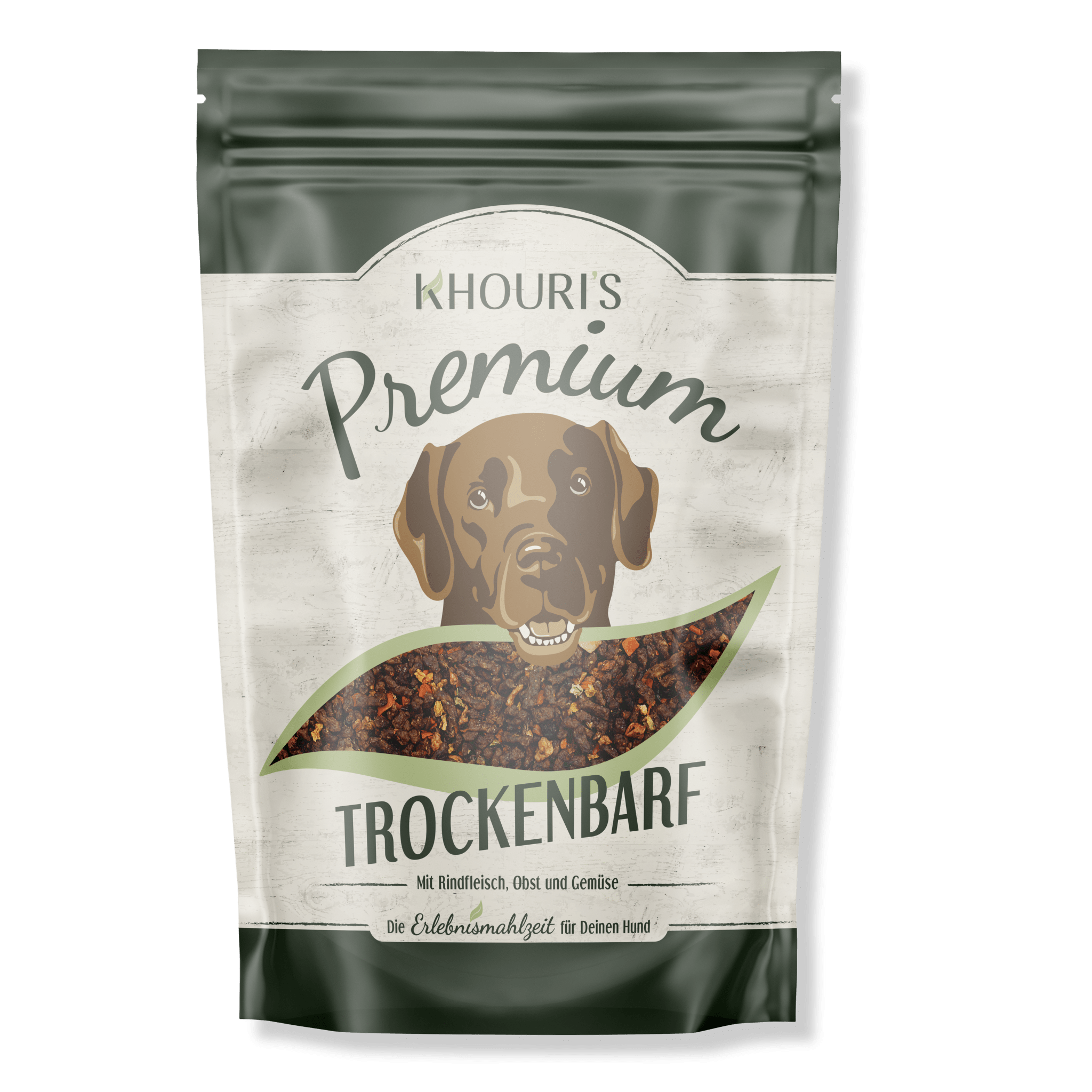 Khouri's Trockenbarf ist kein weiteres herkömmliches Trockenfutter im Regal für Hundebedarf. Es ist eine liebevolle Komposition bester Inhaltsstoffe, die die Gesundheit und die Lebensqualität Deines Hundes steigert und fördert. Bei unserem Trockenbarf handelt es sich um eine Mischung aus hochwertigen, natürlichen Zutaten, die schonend getrocknet wurden, um alle Nährstoffe und einen exzellenten Geschmack bieten zu können.