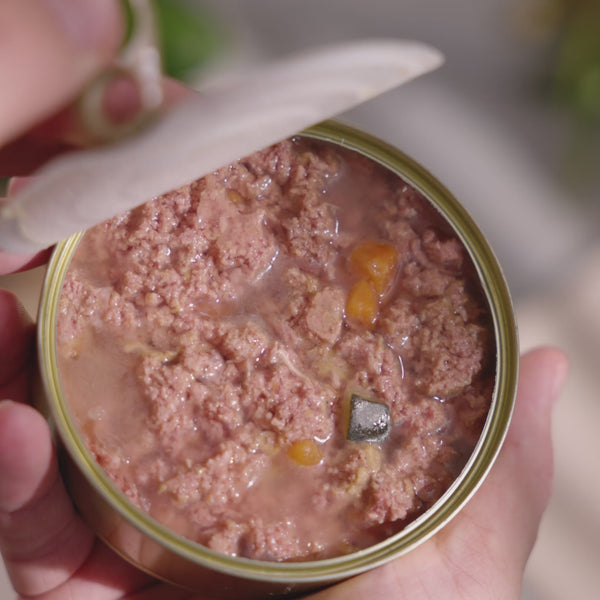 70% Bio-Ente (60% Muskelfleisch, 7% Herz, 3% Leber), 26% Kochsud, 2% Bio-Karotte, 2% Mineralien